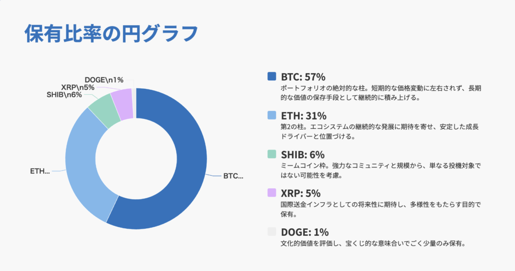 「BTCとETHで全体の約9割。手堅いけど、僕にはこれくらいがちょうどいい。」