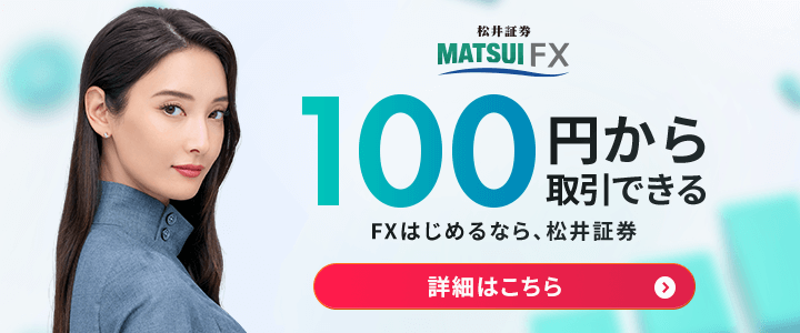 - 100円からの投資が可能!(他の証券会社は4万円からとかが多い。通貨単位1万〜のように。MATSUI FXは1通貨から可能)